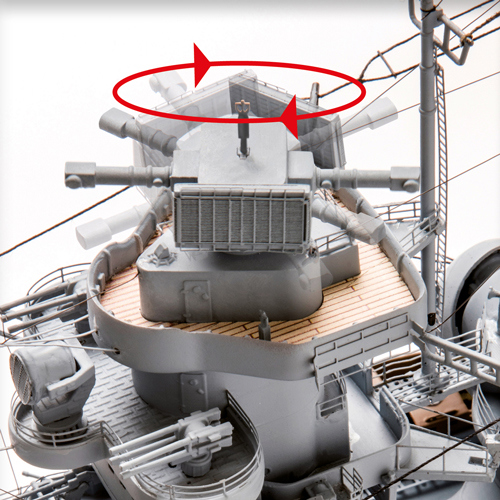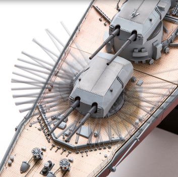 Pomocí infračerveného dálkového ovládání budete moci otáčet věžemi a děly, rozsvěcet palubní reflektory, přehrávat zvuky a lomoz. Kromě toho je trup modelu vyroben výhradně z kovu a jedna jeho odnímatelná část umožňuje pohled do turbínové strojovny vlevo.